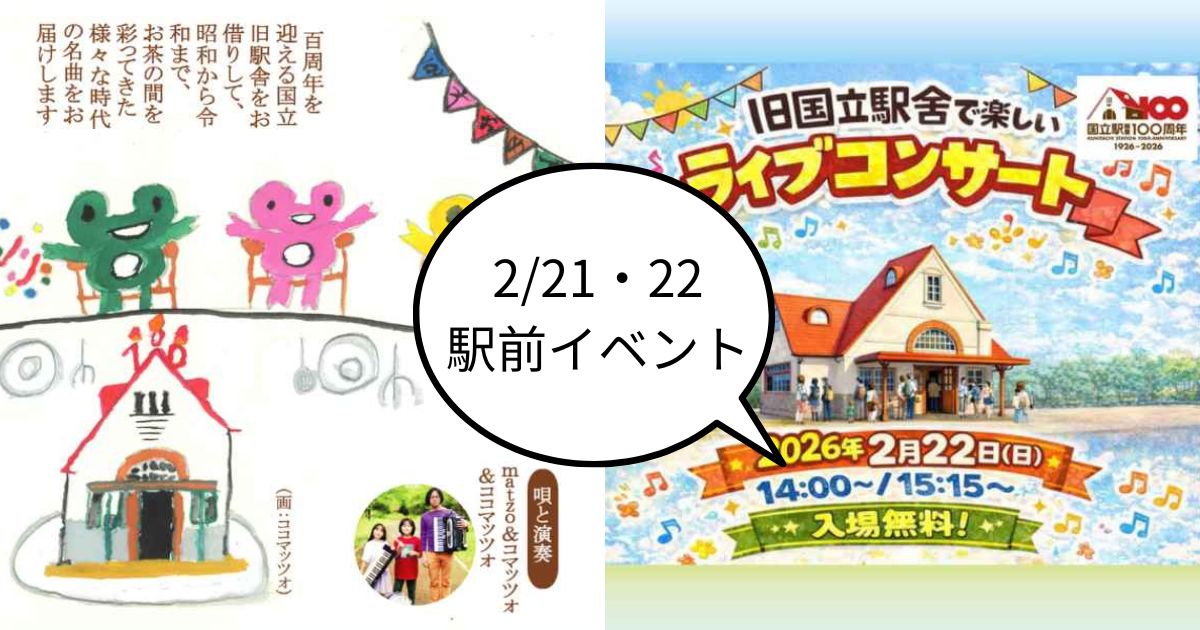 【週末駅前イベント情報】2/21(土)・22(日)は、旧国立駅舎で「百年おもひでコンサート」と「ジュリアンズ – 4 Clarinets & Percussion – LIVE」が開催されるみたい