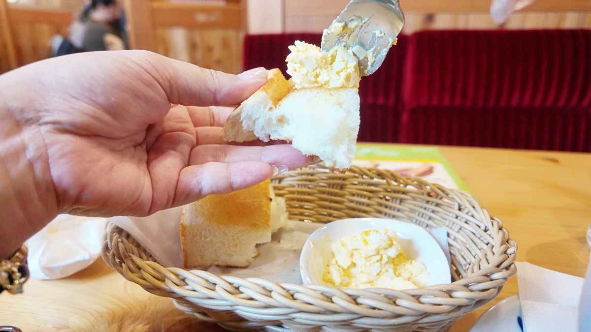 この「山食パン」、バターが塗られていて、甘くて美味しいのでそのまま食べたい気持ちもあるのですが、たまごペーストと食べたい!