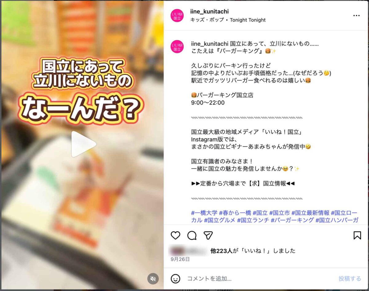 以前、「いいね!国立 Instagram」で、「国立にあって、立川にないものなーんだ?」という投稿をしました。