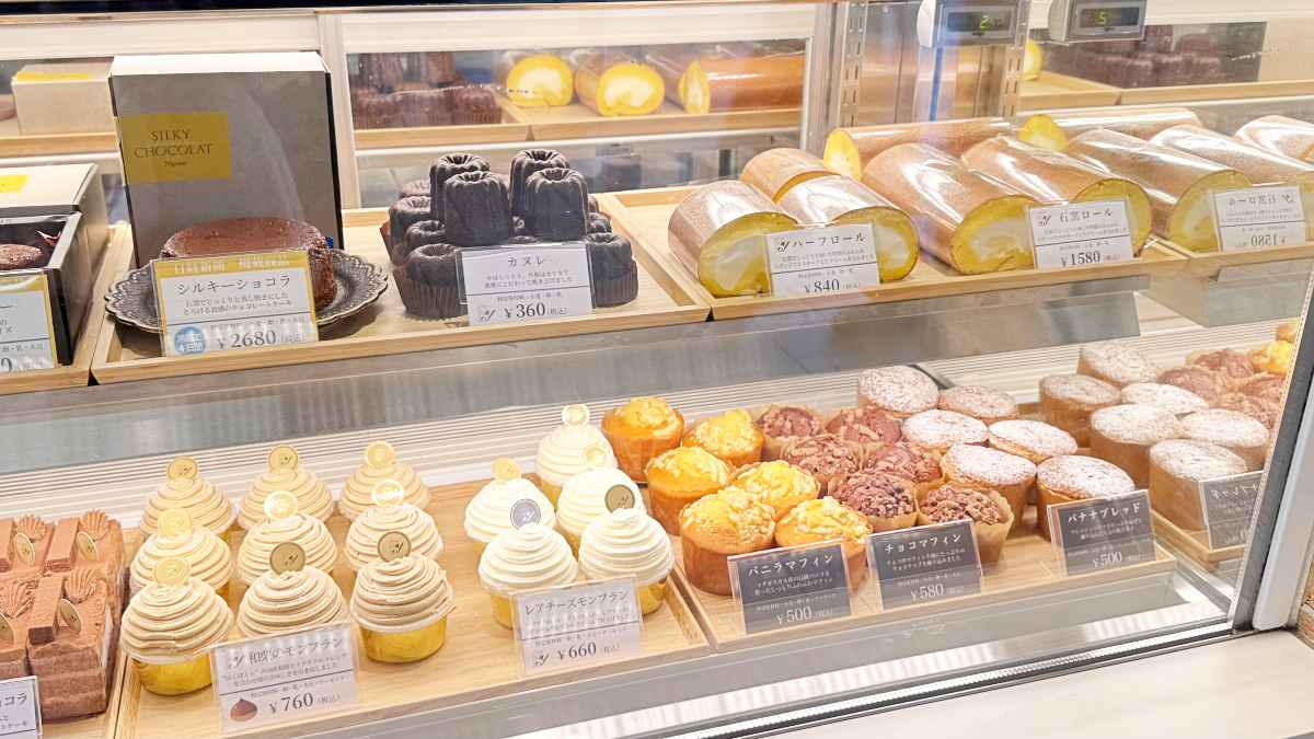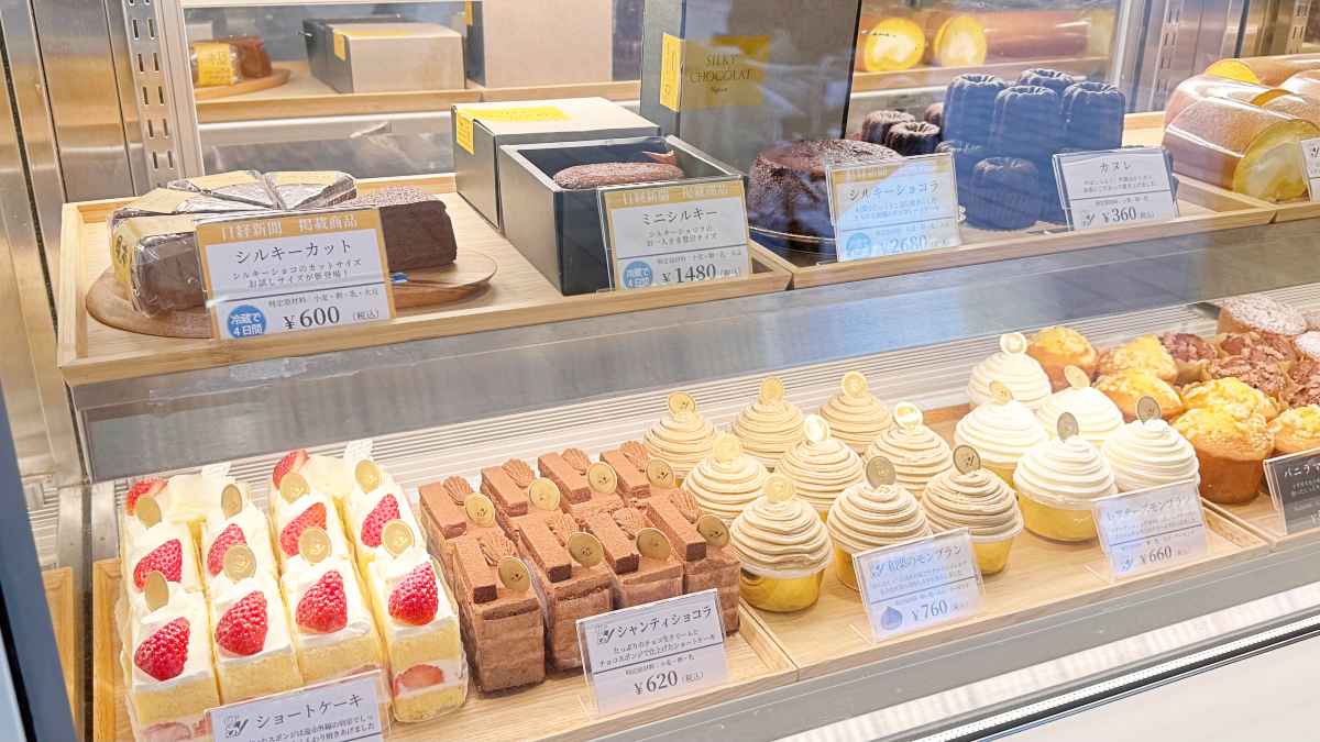名物は「シルキーショコラ」2,680円。小さめサイズの「ミニシルキー」1,480円や、カット売りの「シルキーカット」600円などもありました。