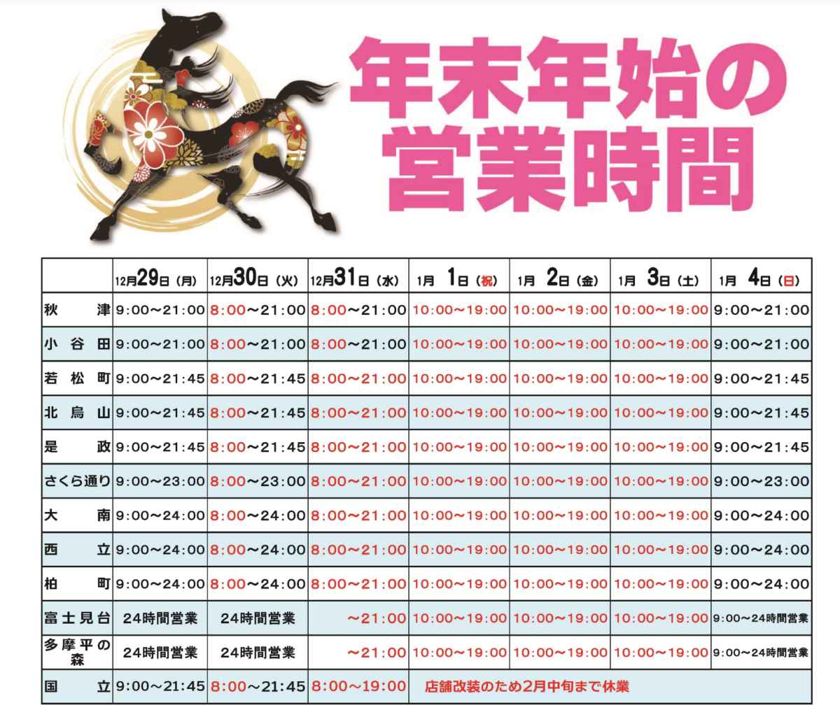 『ina21国立矢川駅前店』年末年始の営業時間
