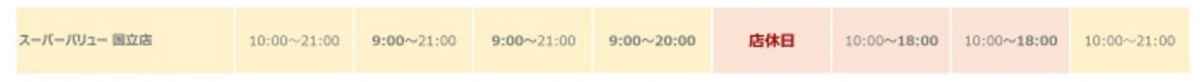 『スーパーバリュー 国立店』年末年始の営業時間