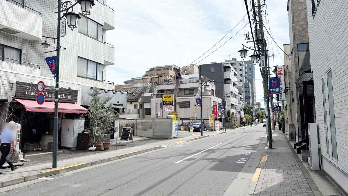 国立駅北口から北方向へまっすぐ4分ほど行ったところ。光町通りぞいです。