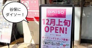 これまで谷保駅近くには『ダイソー』がなかったことにくわえ、フロア面積も広めの店舗になりそうな予感がしているので、期待のオープンになりそうです。