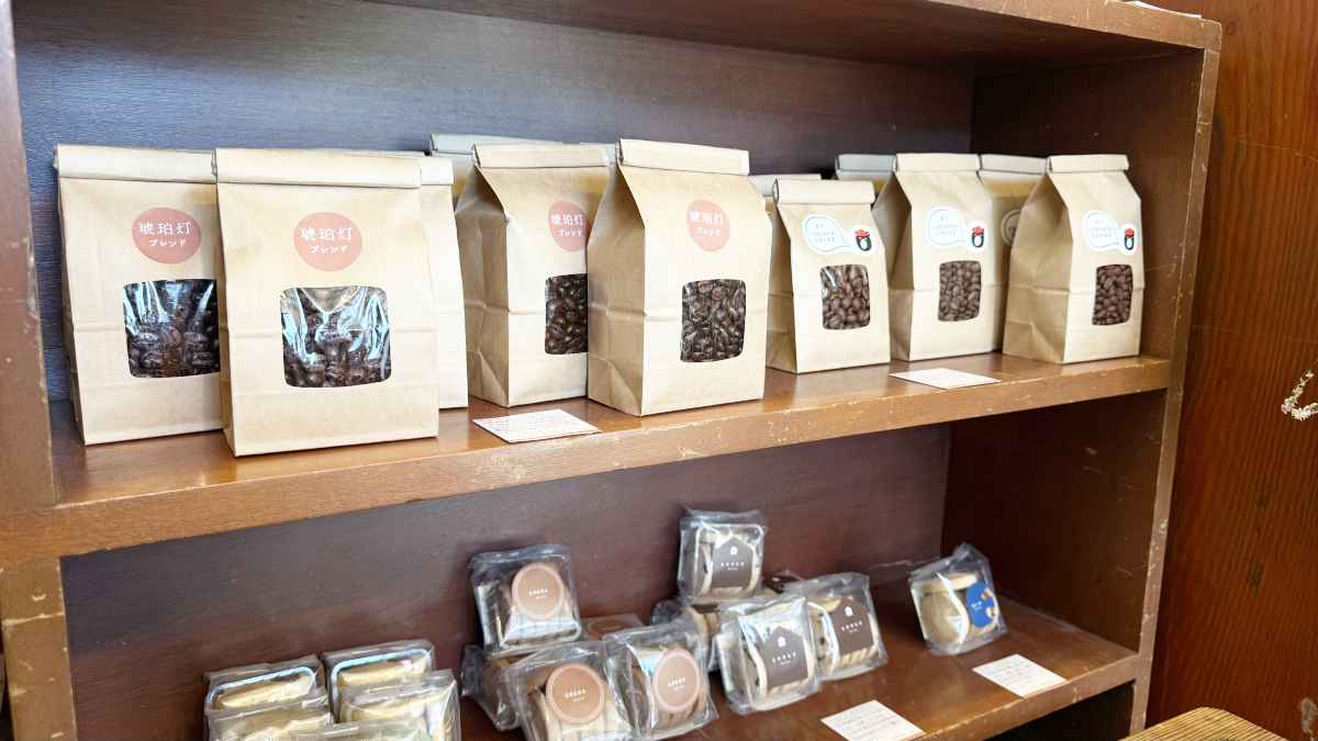 雑貨と珈琲を扱うお店とのことで、オリジナルブレンドの珈琲もこんな感じで並んでいます↓