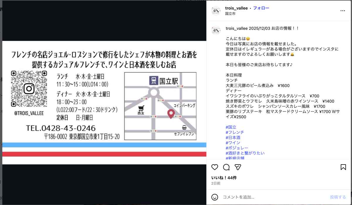 急なお休みなどはお店のInstagramをチェックしてみてください。