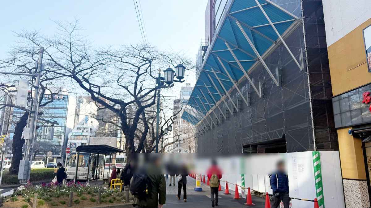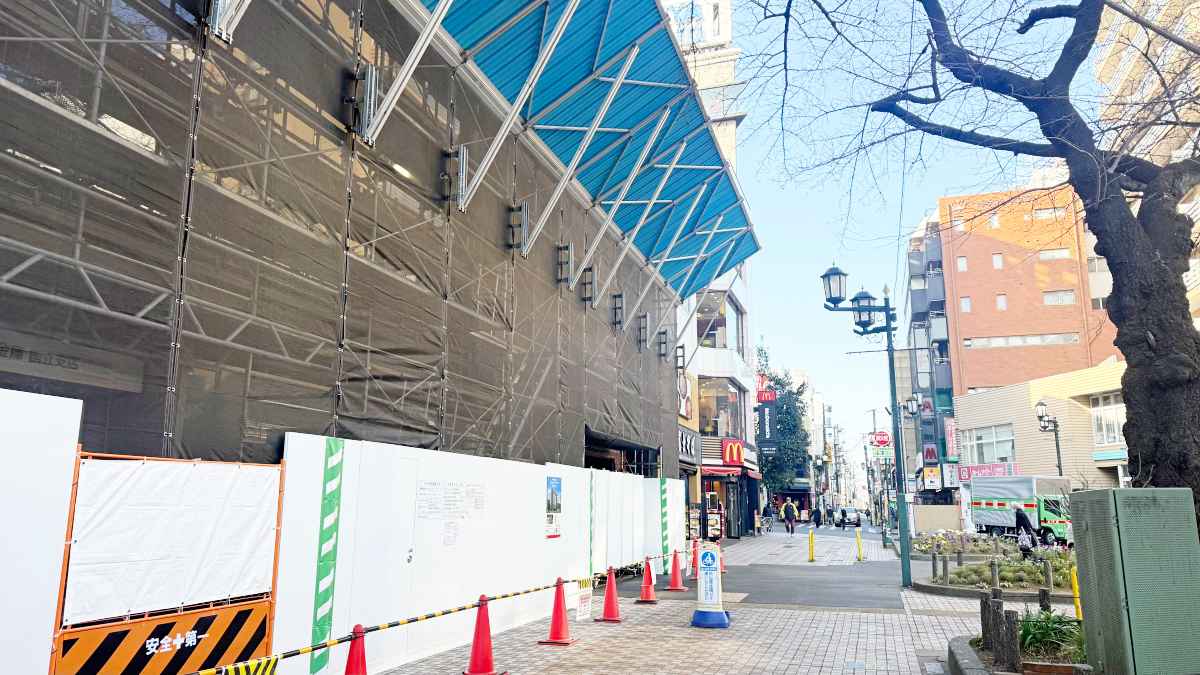 国立駅ロータリーから見える自社ビルは大規模な改装工事中で、現在は別の臨時店舗にて営業中です。