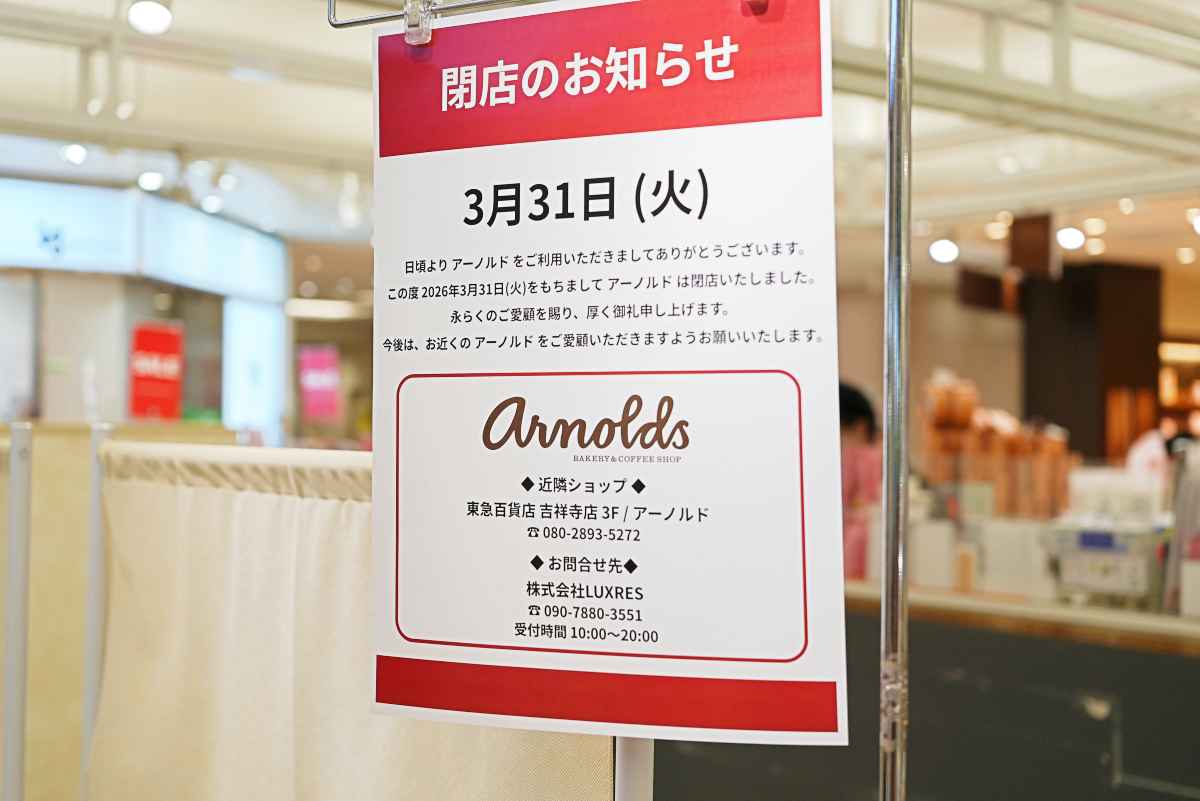 《閉店》nonowa国立にあったフィンランド発のドーナツ店『アーノルド(arnolds)nonowa国立店』が閉店してる。