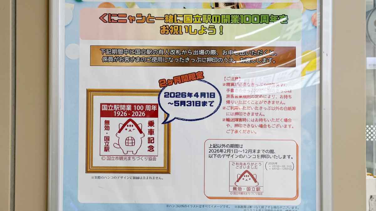 期間限定で国立市のゆるキャラ「くにニャン」の乗車記念印を押してもらえるみたい!