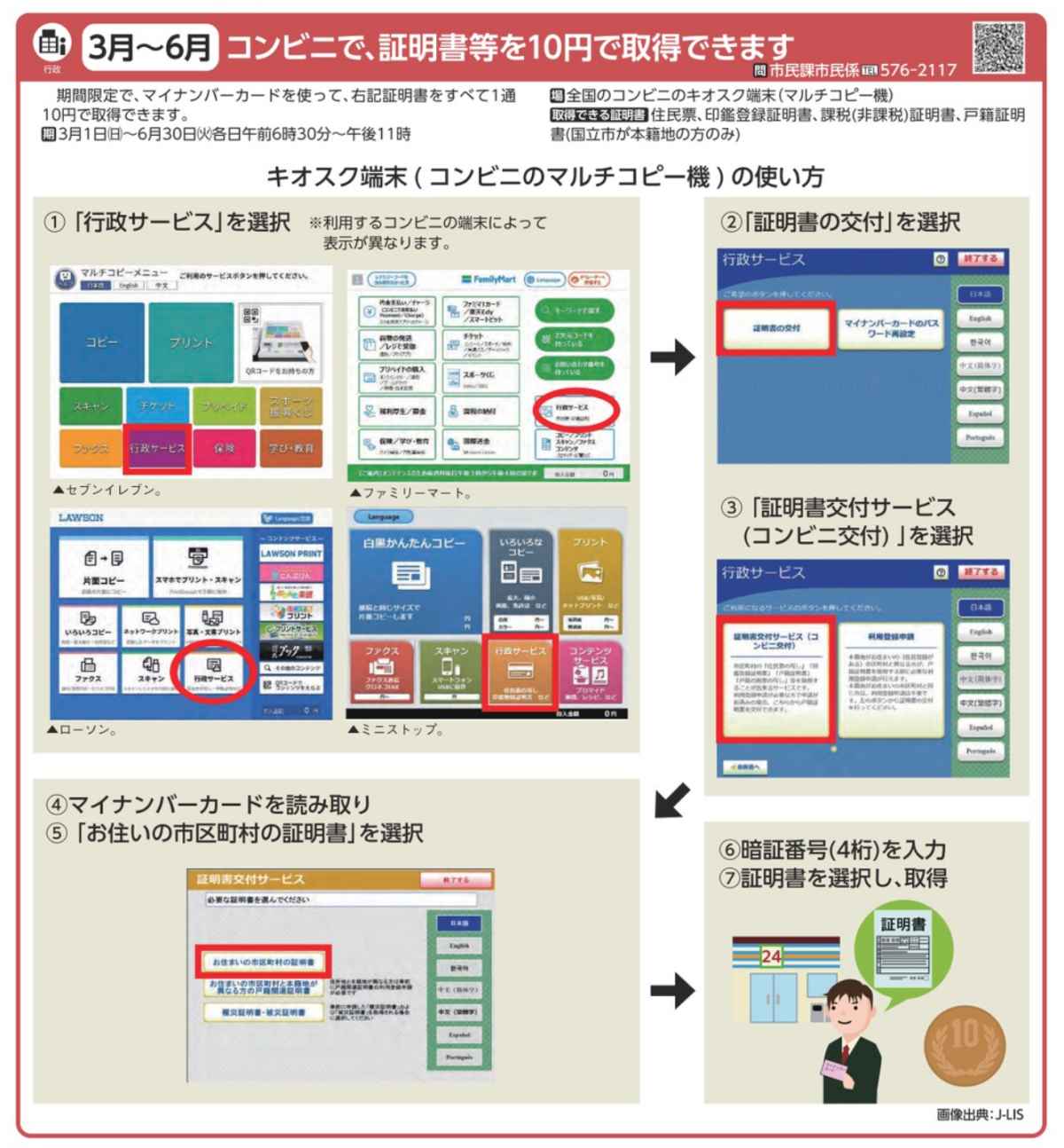 2026年3月1日(日)〜6月30日(火)の期間限定で、コンビニで各種証明書が1通10円で発行できるみたい!