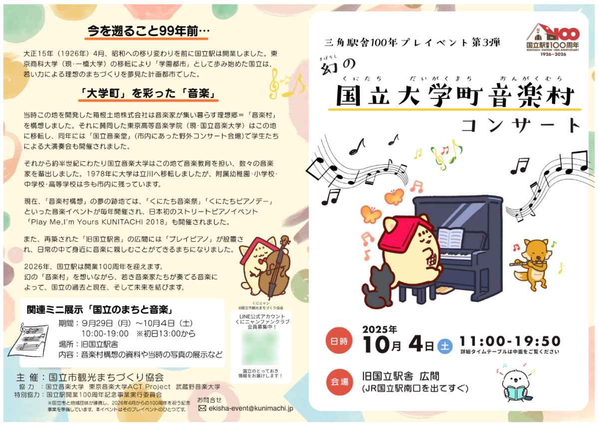音楽家たちの演奏を駅前で!10/4(土)に旧国立駅舎で生演奏イベント「幻の国立大学町音楽村コンサート」が開催されるみたい