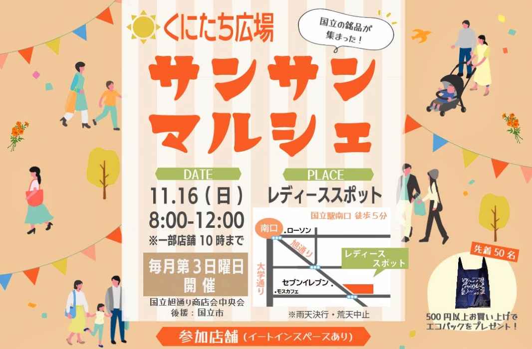 毎月第3日曜日に旭通りぞいにある『レディーススポット』で開催される、国立旭通り商店会中央会が主催する「サンサンマルシェ」。