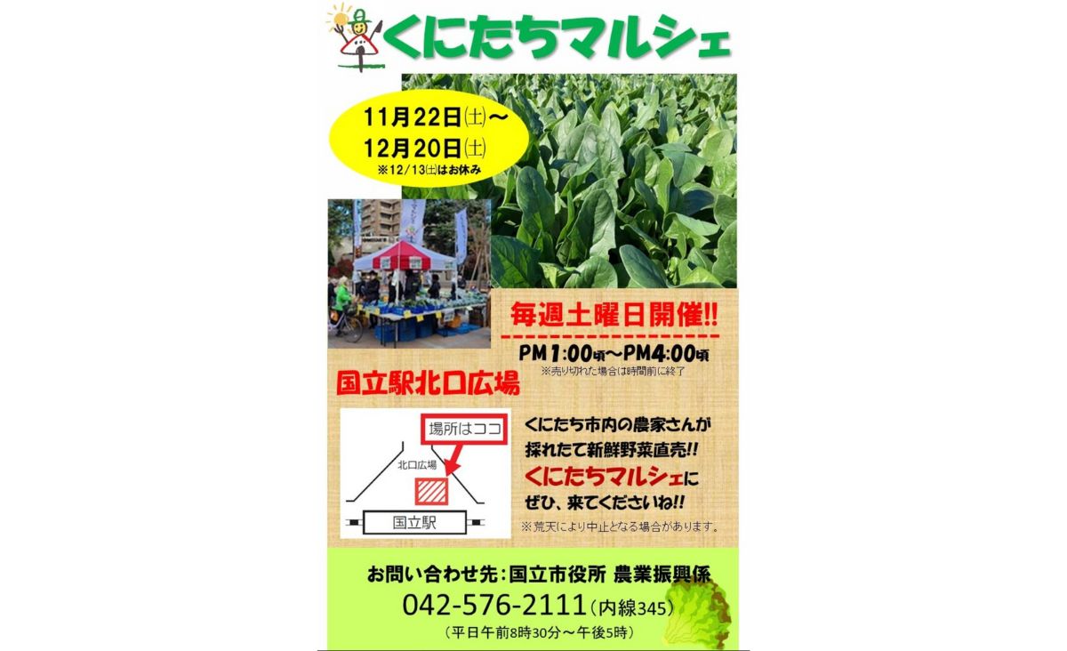 場所が国立駅北口広場とのことで、駅チカで新鮮野菜を買えるチャンスかも!