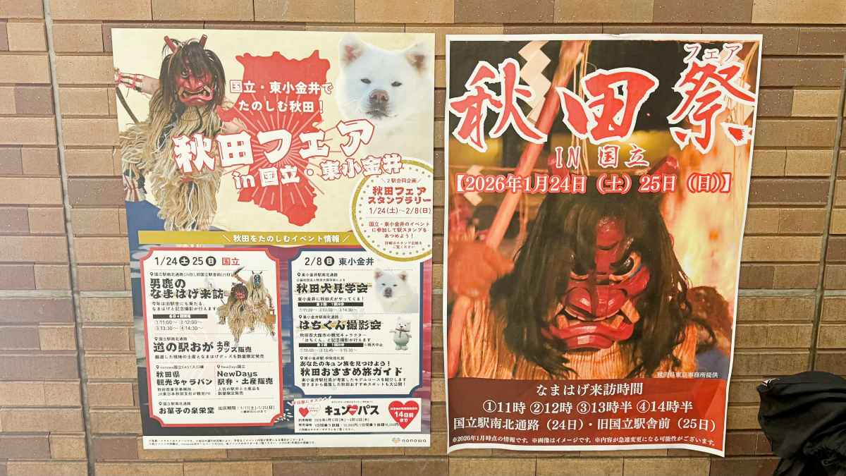 2026年124日(土)・25日(日)の2日間、なまはげの来訪だけでなく、秋田の特産品などの販売も同時開催され、国立駅が秋田カラーになりそうです。